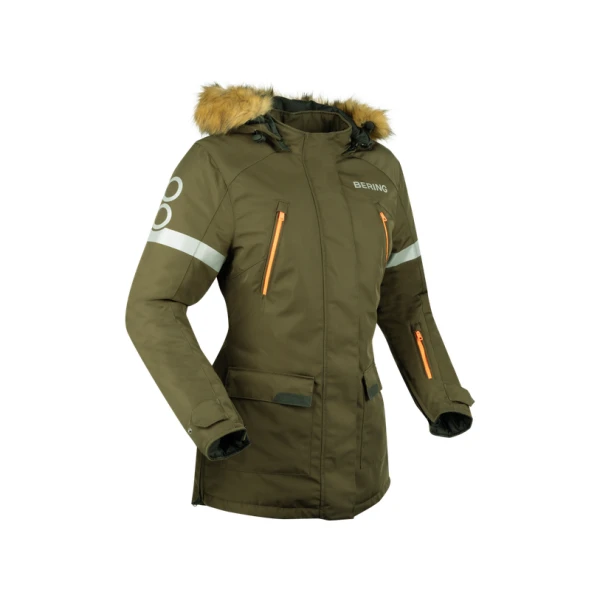 De LADY WEMBLEY doet geen concessies op het gebied van comfort. De capuchon en het synthetische bont zijn afneembaar, waardoor aanpassingen afhankelijk van het weer mogelijk zijn. De zijdelingse ritssluitingen, ribgebreide manchetten, polsaanpassingen met ritssluiting en tailleverstrakking zorgen voor een comfortabele en veilige pasvorm.