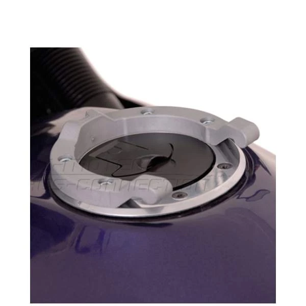 Motorspecifieke tankring die de basis vormt voor de bevestiging van een Quick-Lock tanktas van SW-Motech. Met deze speciaal ontwikkelde tankring kan de tanktas niet meer schuiven en zit hij muurvast op de motor. Hierdoor wordt de kans op krassen en beschadigingen aan uw tank verkleind.