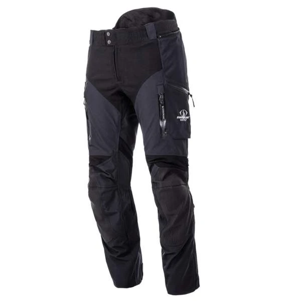 De STADLER 4ALL PRO motorbroek is gemaakt van de materialen; Cordura, Gore-Tex, en Superfabric. Het resultaat is een goed beschermende en veelzijdige gelamineerde motorbroek. Deze kan ingezet worden in zowel de koudere als de zomerse dagen. De buitenlaag van deze STADLER broek is opgebouwd uit 3L Gore-Tex pro en Cordura 500. De water-absorbatie wordt door deze techniek uitgesloten. Het Cordura 500 textiel zorgt voor een zeer goede slijtvastheid. Daarnaast wordt er gebruik gemaakt van CE level 2 gekeurde Sas-Tec protectie op de knieën en heupen.