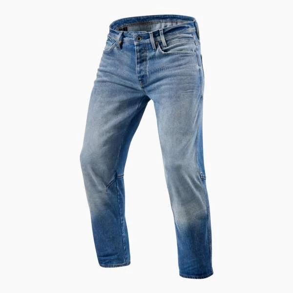 De medium lichtblauwe wassing geeft een expressieve classic heritage look wanneer je deze combineert met een stoere leren jas of een overshirt. Om de pasvorm naar eigen voorkeur aan te passen, hebben we knieprotectorpockets toegepast die in twee hoogtes verstelbaar zijn. Hierdoor heb je de protectoren altijd op de juiste plek, ongeacht je beenlengte.