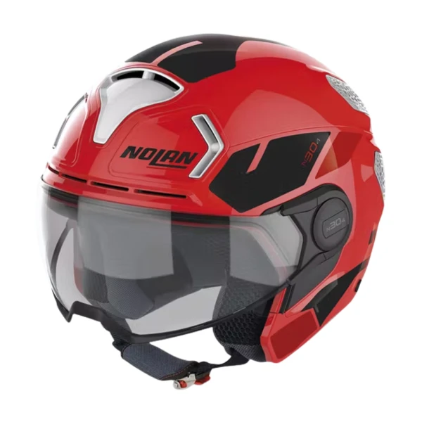 Nolan N30-4 T is de nieuwe helm ontworpen voor de stadsforens, ideaal voor zowel motorfietsgebruik als voor scooters, evenals voor nieuwe vormen van duurzame mobiliteit. Het ventilatiesysteem, het resultaat van jarenlang onderzoek, is in staat om verhoogd comfort te bieden, zelfs bij lagere snelheden. De stijl van de N30-4 T combineert een sportief en modieus vizier in de vorm van een bril met de bescherming van de uitneembare kinbescherming.