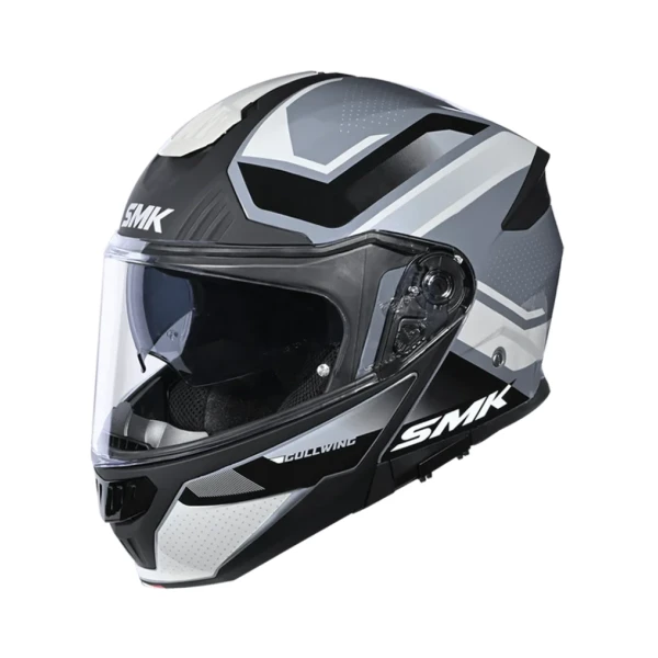 SMK Gullwing biedt een complete reeks functionaliteiten zoals een geïntegreerd zonnevizier, windstop, uitneembare Hypoallergene voering en Pinlock®70 voorbereid vizier. Verkrijgbaar in effen kleuren en met opvallende graphics, bied de Gullwing serie je complete stijl en veiligheid!